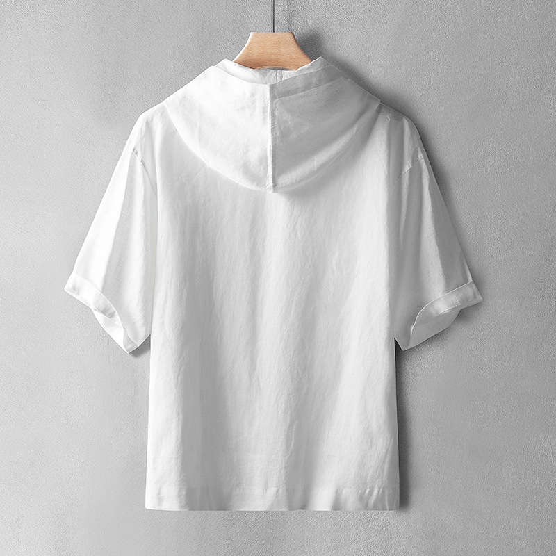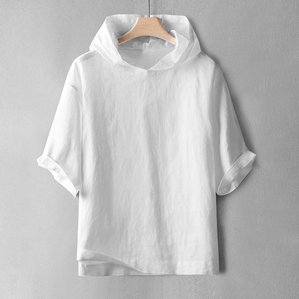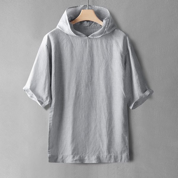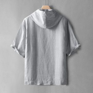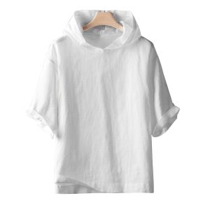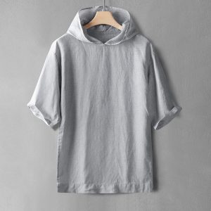 Summer Hip Hop Style Thin Solid Color Linen Crew Neck Pullover Loose Fit Men’s Casual Hoodie