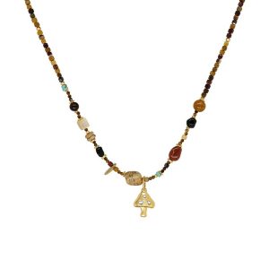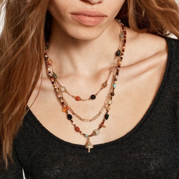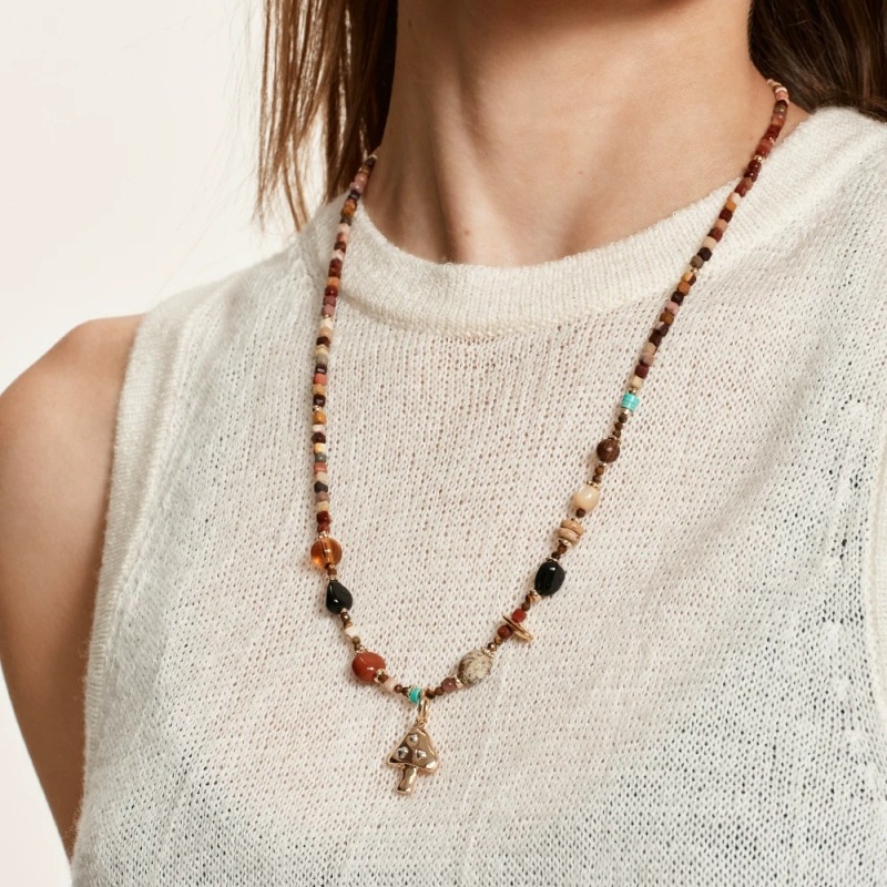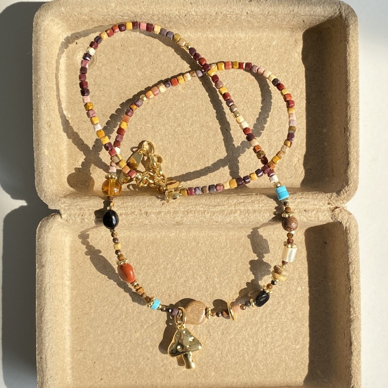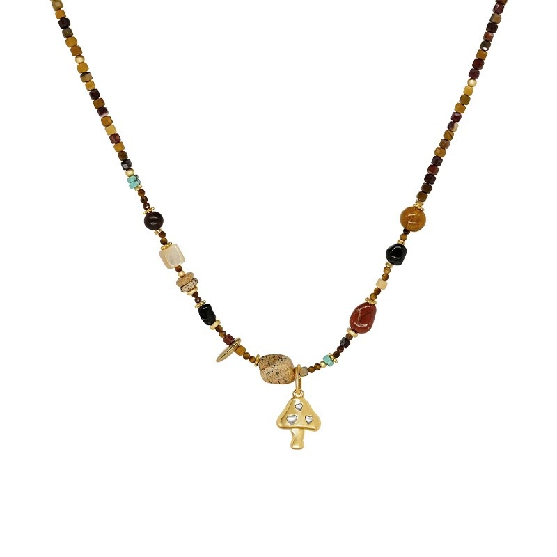 Sunrise Mushroom Natural Stone Beaded Necklace Bohemian Style Sweater Chain